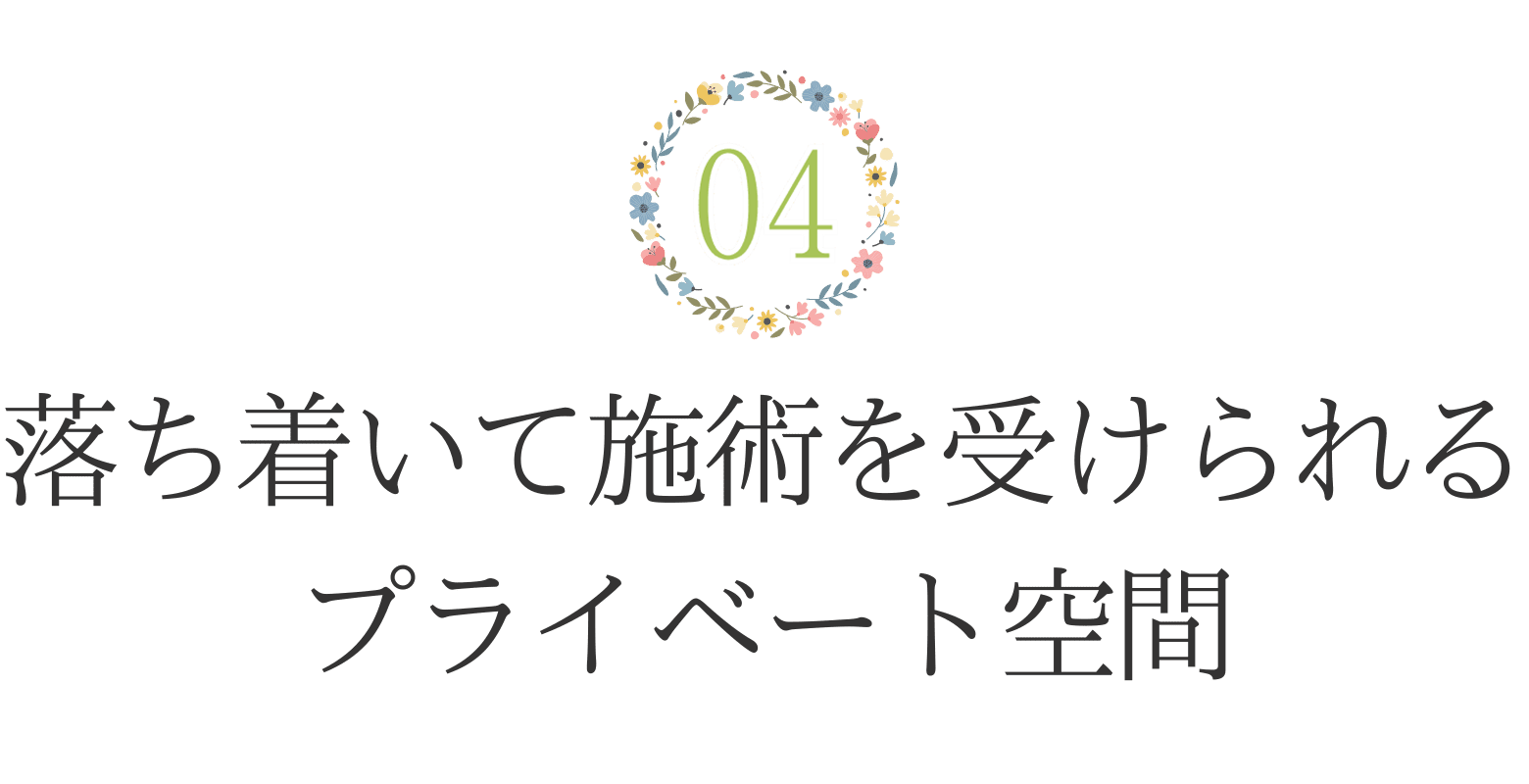 当サロンは、プライベートサロンのため完全個室でリラックスしてお過ごしいただけます。