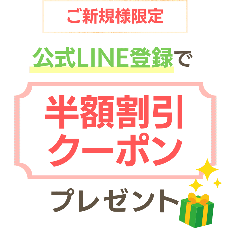 まずは、このホームページの「今すぐ半額クーポンをもらう」より公式LINEへご登録ください。